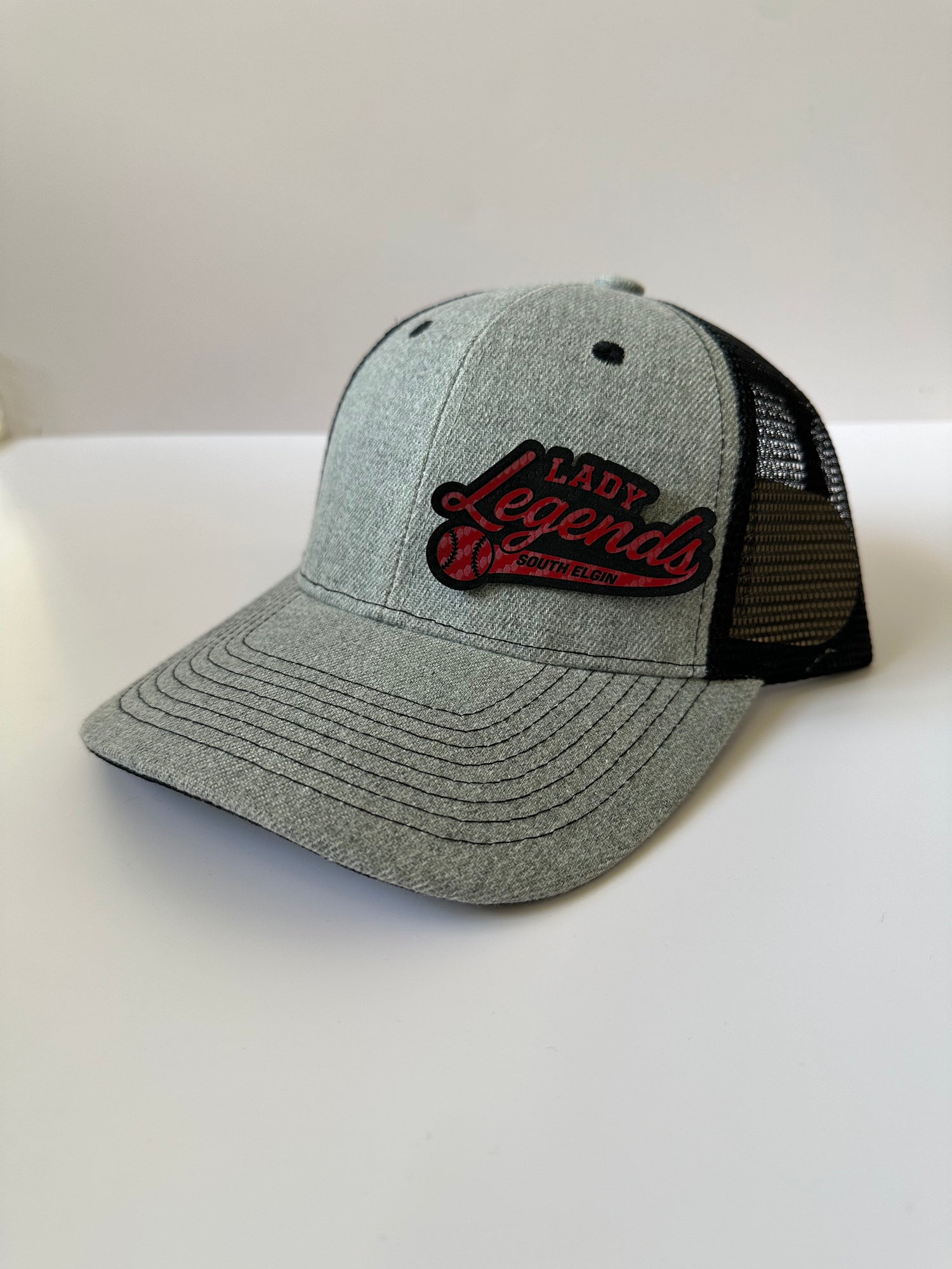 Show your support for the South Elgin Lady Legends with this custom hat featuring an engraved leather patch with the official team logo. Perfect for players, parents, and fans to wear with pride!